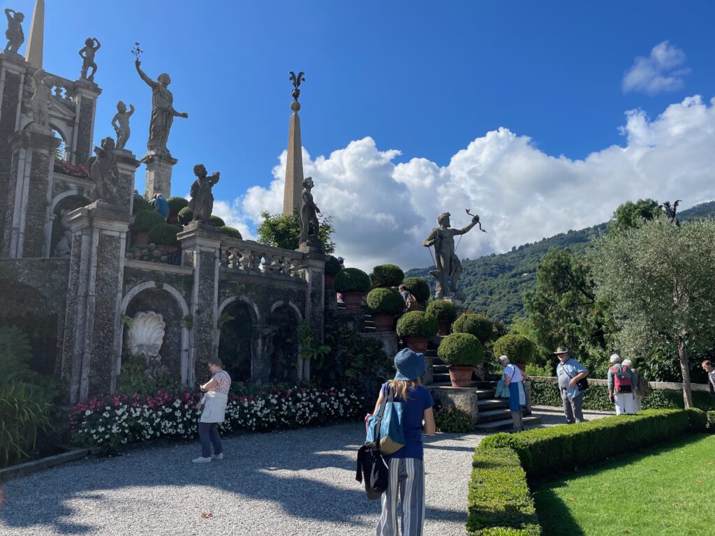Walk across the street to the pier and onto the boat to take us into lake Maggiore and to the first of our Borromean Islands; Isola Bella (Beautiful Island).