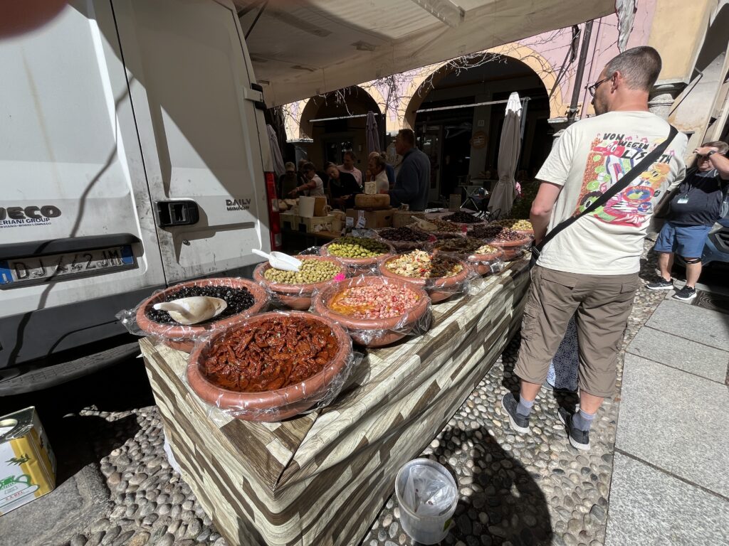 We checked out the merchandise, sampled a bit of cheese and an olive or two, and boarded a water taxi to the San Giulio Island.