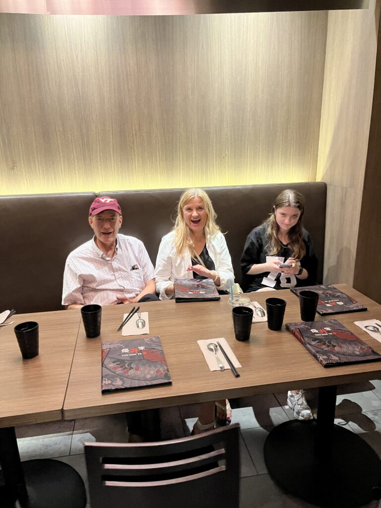 We checked in, found our room and called cousin Rich. He, Ginta, and Greta had driven in earlier today and we joined them for dinner at an amazing Japanese restaurant not too far from the hotel.