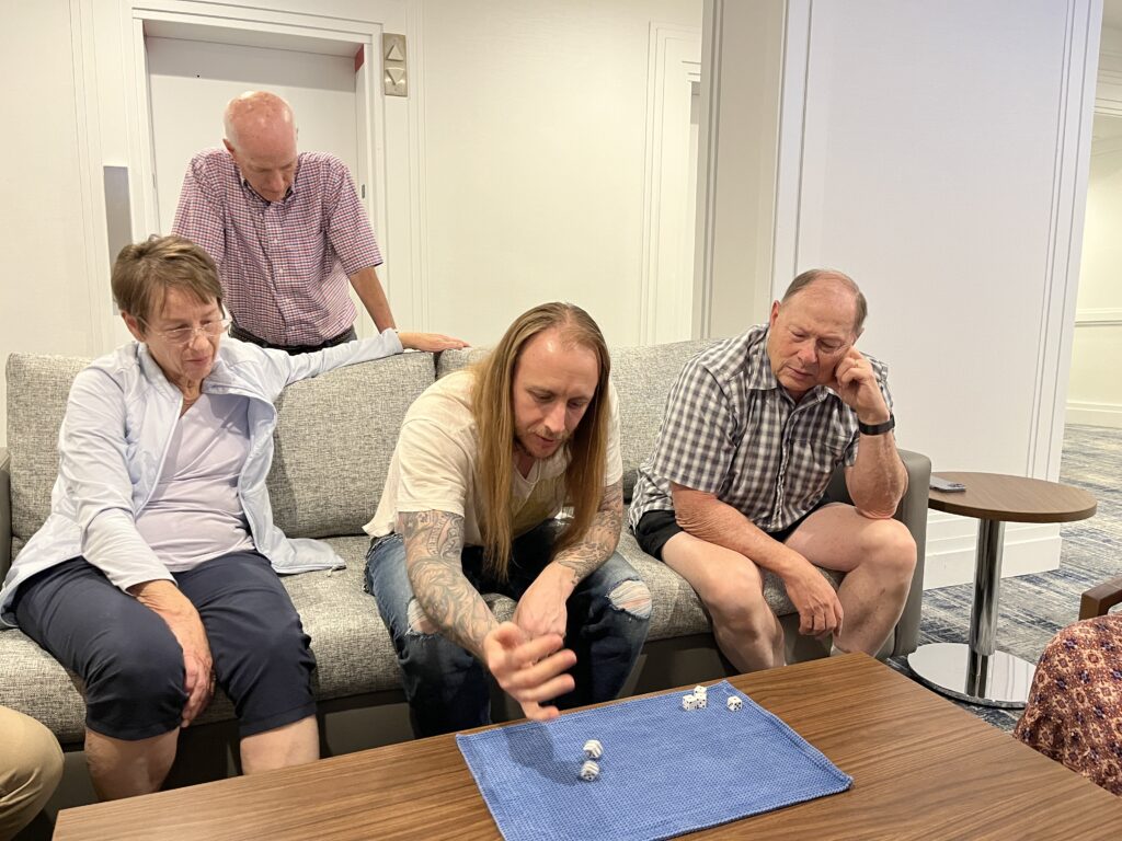Following dinner several of us retired to a handy alcove for a game of Shut Up Orville.