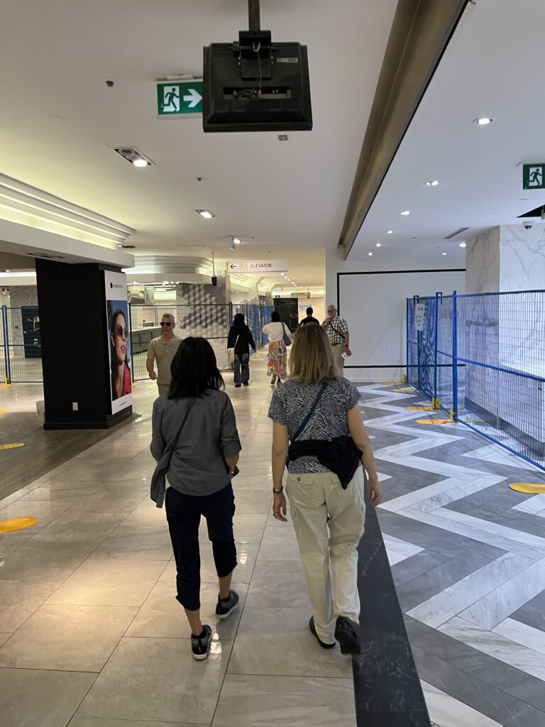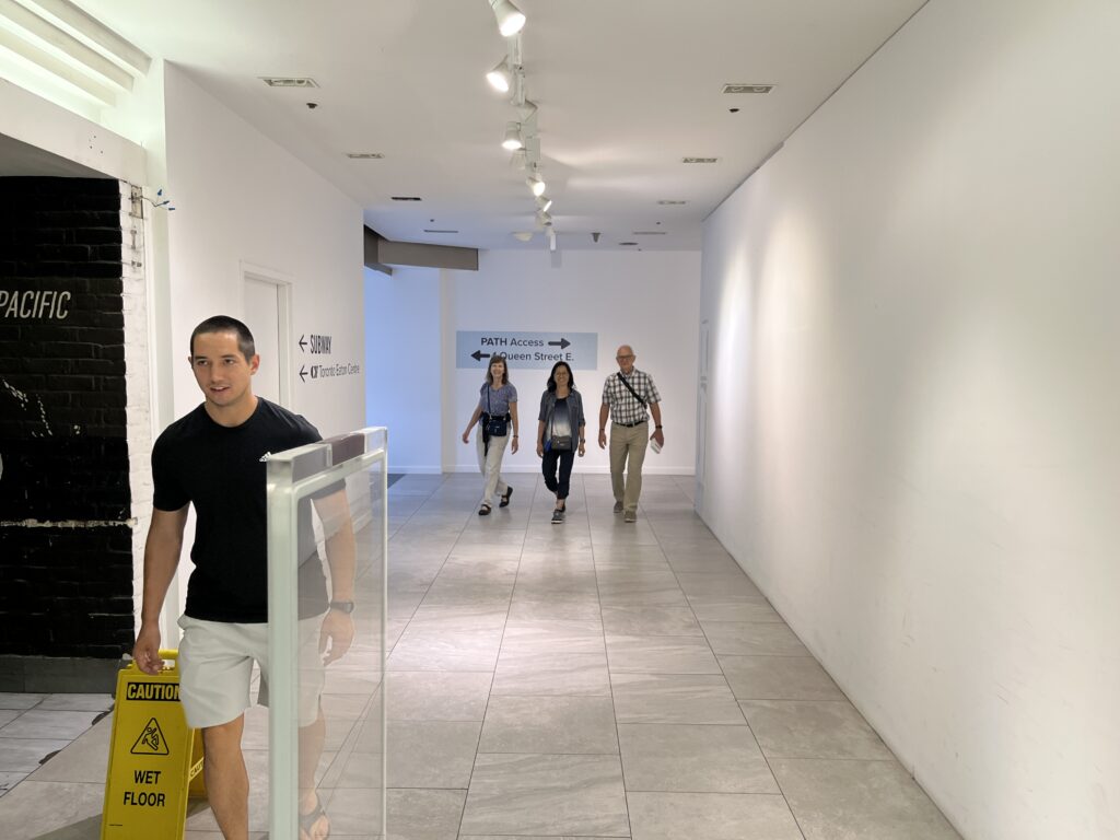What we found was that each building used its sub-surface floor to provide space for commerce – stores and eateries and such. These areas were connected by nicely finished hallways.